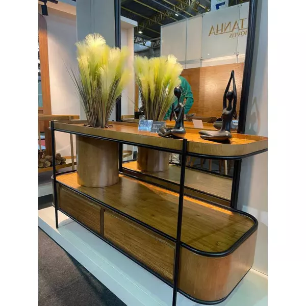 O Aparador Cachepô é a opção certa para renovar com muito estilo seu corredor, atrás do sofá, junto à parede, debaixo da janela ou mesmo para dividir ambientes. Estrutura metalica em aço com pintura eletrostática, estrutura com lâmina de cinamomo e as bordas da bandeja com laminado de sumaúma. O aparador cachepô tem um visual incrível o que permite uma composição atemporal repleta de personalidade.