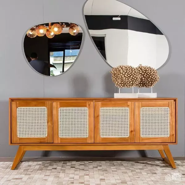 Com este lindo Buffet para sala de jantar você proporcionará momentos mais agradáveis e descontraídos, design moderno, perfeito para sua casa. O buffet Baobá tem a estrutura em MDF laminado com folhas de madeira maciça, e os pés em madeira maciça tauari seca em estufa e imunizada. Esse modelo possui uma gaveta interna e uma prateleira, que ajudam na organização da sua sala de jantar, e um detalhe muito bonito e atual desse modelo, é a porta com telinha (rattan) que proporciona um charme a mais na sua decoração. Não perca tempo garanta já o seu!!!