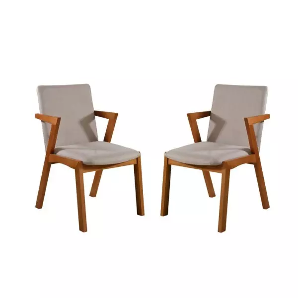 2 Cadeiras Madeira Maciça Estofada com Braço - Tulipa - Harmonia Salas
