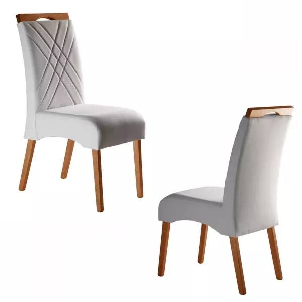 As cadeiras para mesa de jantar Alfa, esbanjam elegância e charme para deixar sua sala de jantar completa e moderna! Elas contam com um encosto todo estofado com detalhes em costura, e um pegador em madeira maciça, que proporcionam um charme a mais a esse modelo. O assento é fabricado com espuma de densidade D-23 e D-20 no encosto, reforçando o conforto do produto. Sua estrutura é toda em madeira maciça tauari, ecologicamente correta. Perfeitas, não é mesmo? Aproveite!