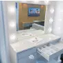 O Camarim Berlim é o ambiente perfeito para quem quer um cantinho especial para se arrumar diariamente. Além de lindo e possuir um desing moderno, é feito em MDF com o tampo e as laterais em 25mm, o que traz resistência e durabilidade para o seu móvel, lâmpadas bivolt em LED, inclusas, e gavetas com corrediças telescópicas e divisórias internas. Aproveite já esse luxo de camarim!