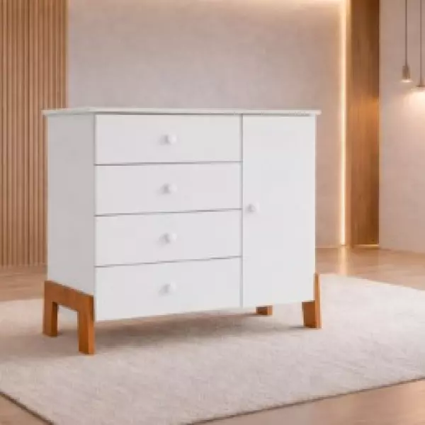 Cômoda Infantil 4 gavetas 1 Porta MIMO - MobiBaby