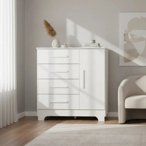 Com 4 gavetas amplas e estruturadas, ela oferece espaço ideal para guardar roupas, acessórios e objetos pessoais, mantendo tudo sempre bem organizado.