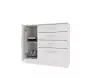 Com a Cômoda Chicago seu quarto estará completo e seus pertences bem organizados, uma aliada na organização de seu quarto. Fabricada em MDP, possui 4 gavetas com corrediças telescópicas, sapateira na lateral com prateleira e puxadores em MDF. As corrediças telescópicas são feitas de aço e por isso são mais resistentes e duráveis, permitindo um deslize suave e uma abertura total da gaveta sem risco.