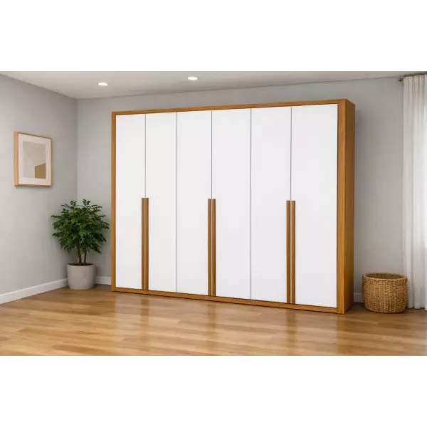 Guarda-roupa desenvolvido para oferecer amplo espaço interno e praticidade no dia a dia, sendo uma excelente escolha para quem precisa organizar roupas e acessórios com eficiência. Possui 6 portas que facilitam o acesso aos compartimentos internos e garantem um visual harmonioso ao ambiente.