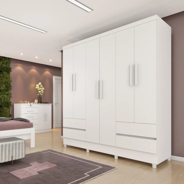 O Guarda Roupa Oregon veio para agradar todos os gostos. Procurando elegância, modernidade e sofisticação para seu quarto? Este é o produto que irá te oferecer essas qualidades. Produto fabricado em MDP com 6 portas de bater, possui um excelente espaço interno bem distribuído, oferecendo máxima organização de forma prática. Suas gavetas possuem corrediças telescópicas que traz uma maior sofisticação para o guarda-roupa e também proporciona um mecanismo silencioso para abrir e fechar as gavetas, parte interna é na cor do produto, escolha a melhor cor que combine com você e seu quarto. Garanta já o seu!