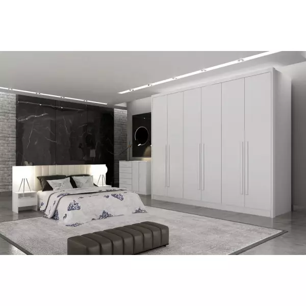 O Guarda Roupa Maldivas vai proporcionar um ambiente aconchegante mantendo um visual sofisticado e funcional. Composto por peças de extrema qualidade e com excelente espaço interno bem distribuídos, oferecendo máxima organização de forma prática. Fabricado em 100% MDF, 6 portas de bater, possui 8 gavetas com corrediças telescópicas, puxadores com acabamento amadeirado, duas opções de montagem interna, fundo inteiriço de 6mm e cabideiros em alumínio. Amplo espaço interno. Aproveite!