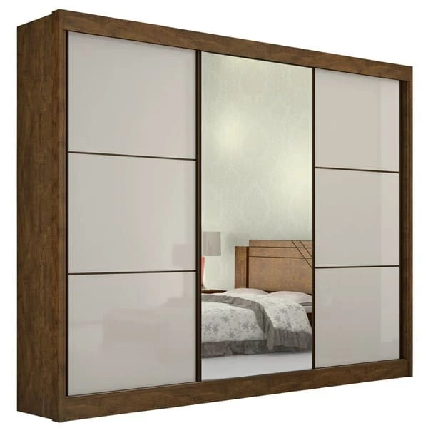 Guarda Roupa Casal com Espelho 3 Portas 6 Gavetas - Los Angeles - Móveis D'Doro