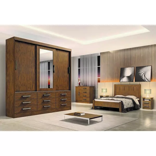 Guarda Roupa Casal com Espelho 3 Portas 9 Gavetas - Meridian - Móveis D'Doro