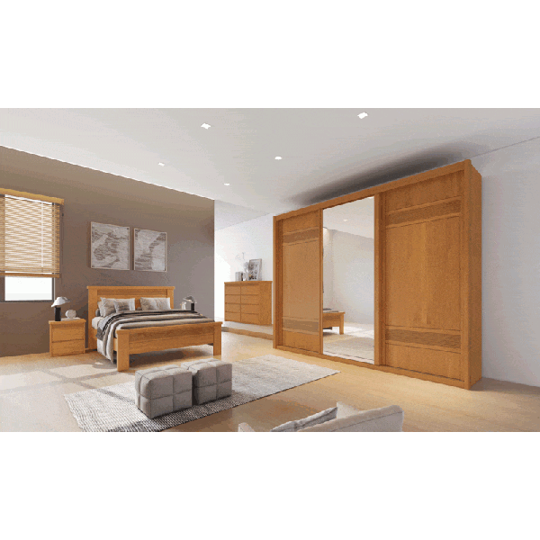 São três portas de correr com trilhos em alumínio e deslizamento suave, que otimizam o espaço do quarto, sem atrapalhar no momento da abertura. Confira e aproveite!