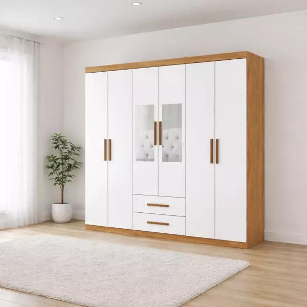 1 Guarda Roupa com Espelho e 6 Portas Platinum -Grand Line