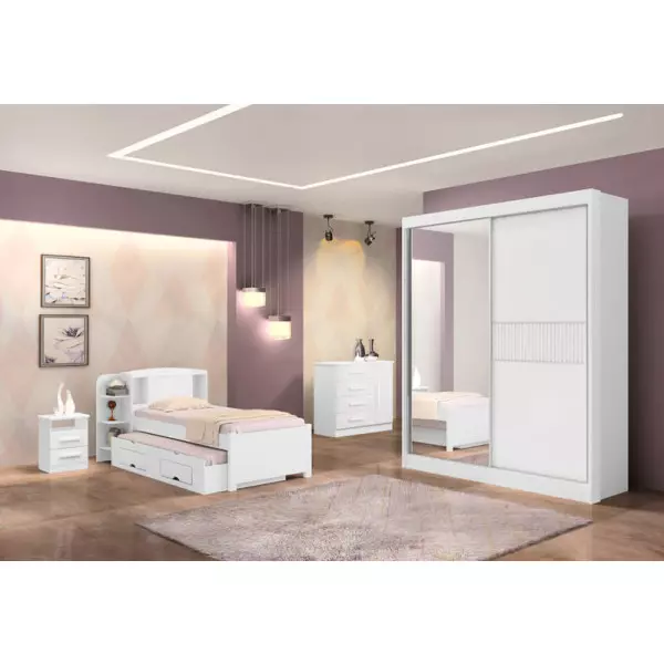 Guarda Roupa Solteiro com Espelho 2 Portas 3 Gavetas - Atenas Ripado - Móveis D'Doro