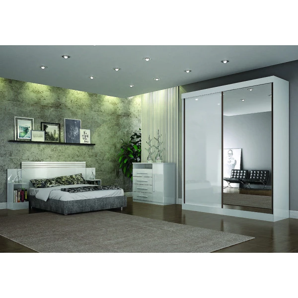 Guarda Roupa Solteiro com Espelho 2 Portas 3 Gavetas - São Paulo - Leifer Móveis