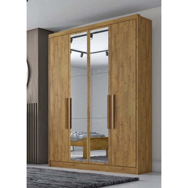 O Guarda Roupa Moderni Plus vai proporcionar um ambiente aconchegante mantendo um visual sofisticado e funcional. Composto por peças de extrema qualidade e com excelente espaço interno bem distribuídos, oferecendo máxima organização de forma prática. Fabricado em 100% MDF, 4 portas de bater, sendo duas com espelhos. Possui 3 gavetas com corrediças telescópicas, cabideiros em alumínio, puxadores amadeirados. Amplo espaço interno. Aproveite!