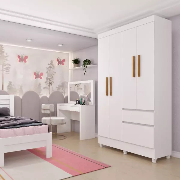 O Guarda Roupa Oregon veio para agradar todos os gostos. Procurando elegância, modernidade e sofisticação para seu quarto? Este é o produto que irá te oferecer essas qualidades. Produto fabricado em MDP com 4 portas de bater, possui um excelente espaço interno bem distribuído, oferecendo máxima organização de forma prática. Suas gavetas possuem corrediças metálicas que traz uma maior sofisticação para o guarda-roupa e também proporciona um mecanismo silencioso para abrir e fechar as gavetas, parte interna é na cor do produto, escolha a melhor cor que combine com você e seu quarto. Garanta já o seu!