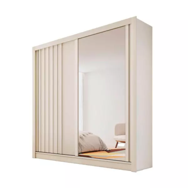 1 Guarda Roupa Solteiro Ripado com Espelho 2 Portas 4 Gavetas - Lugano - Made Marcs