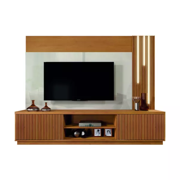 O Home Arezzo é ideal para uma sala sofisticada e moderna. Beleza e funcionalidade são atributos presente em cada detalhe desse móvel, o LED em cascata na lateral traz um charme todo especial agregando muito mais requinte ao seu ambiente. Feito em MDF, com detalhes ripados, 2 portas de correr para guardar seus eletrónicos e tampo de 40mm conferindo resistência ao móvel Confira e aproveite!