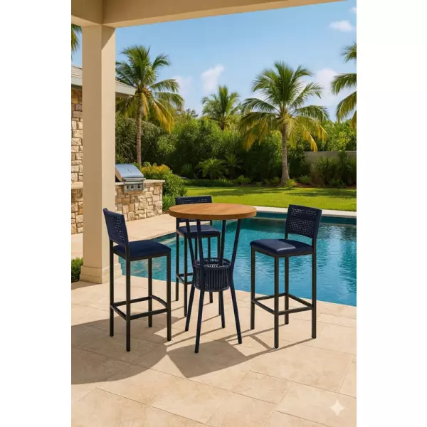 1 Mesa Bistrô Redonda com Cooler 3 Banquetas Náutic - Solara