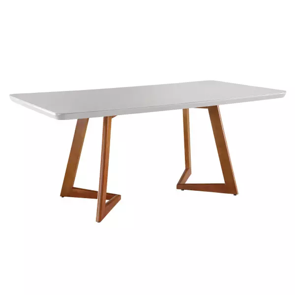 A Mesa de Jantar Lívia veio para encantar o seu ambiente com um toque de delicadeza e modernidade. Possui sua base em 100% em Madeira Maciça Cinamomo e seu tampo em MDF laqueado com vidro serigrafado de 4mm sobreposto com quinas arredondadas. Esta mesa é para você que procura um produto de qualidade, duradouro e elegante! O seu tampo em formato retangular permite uma sala de jantar ampla na qual proporciona uma acomodação maior de pessoas e uma circulação agradável no ambiente. A mesa vai semi montada. Não necessita da montagem de um profissional, ficando ao critério do cliente. Imperdível!