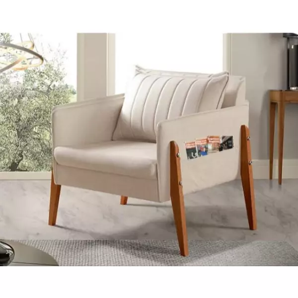 Essa poltrona decorativa oferece tudo o que você sempre procurou em uma poltrona! Estrutura de alta resistência com design robusto, assento e encosto na medida perfeita para garantir o seu conforto. Ideal e cheia de charme para utilizar em diversos ambientes evidenciando a decoração da casa. Compre já a sua! Fabricada com estrurura em madeira maciça (reflorestada). Assento com pillow fixo, encosto com almofada solta, espuma D-33 soft firme e com fibra de silicone, proporcionando muito mais maciez e conforto.Possui porta revistas em um dos lados. Seu ambiente ficará simplesmente deslumbrante com essa linda poltrona. Gostou? Aproveite e não deixe esta oportunidade escapar!