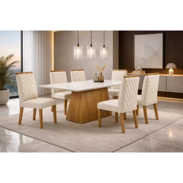 Sala de Jantar com Vidro 6 Cadeiras 1,80x0,90m - Amsterdã - Art Salas