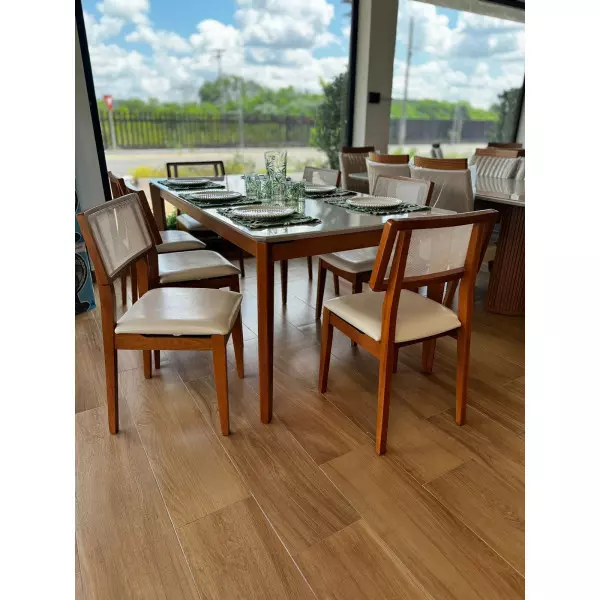 Sala de Jantar com Vidro 8 Cadeiras 2,20x1,10m - Berlim - Star Móveis