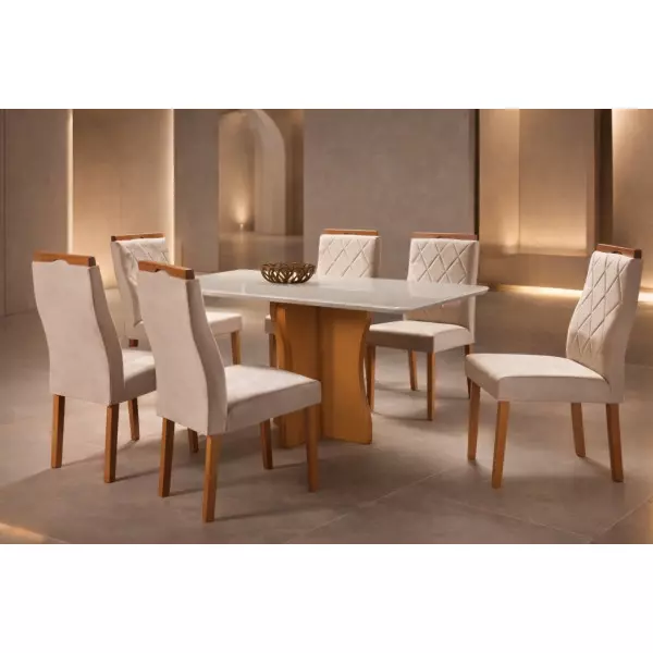 Sala de Jantar Completa com 6 Cadeiras MDF Laminado 1,60x0,90m - Bella - Art Salas