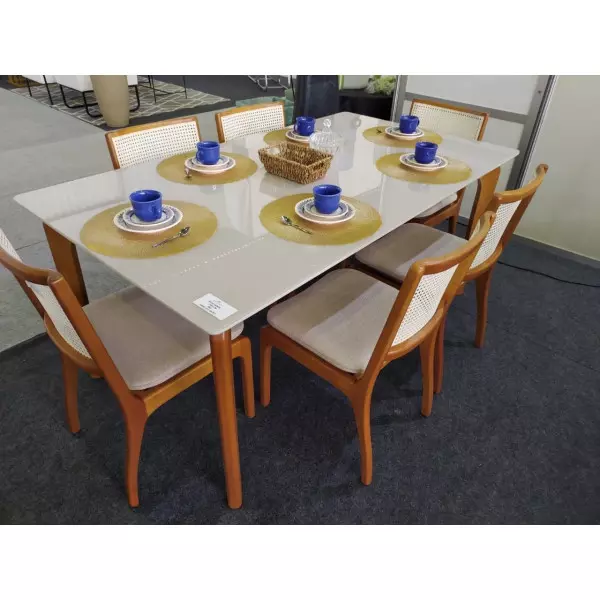 Sala de Jantar Madeira Maciça com vidro 6 Cadeiras 1,80x1,0m - Esparta - Requinte Salas