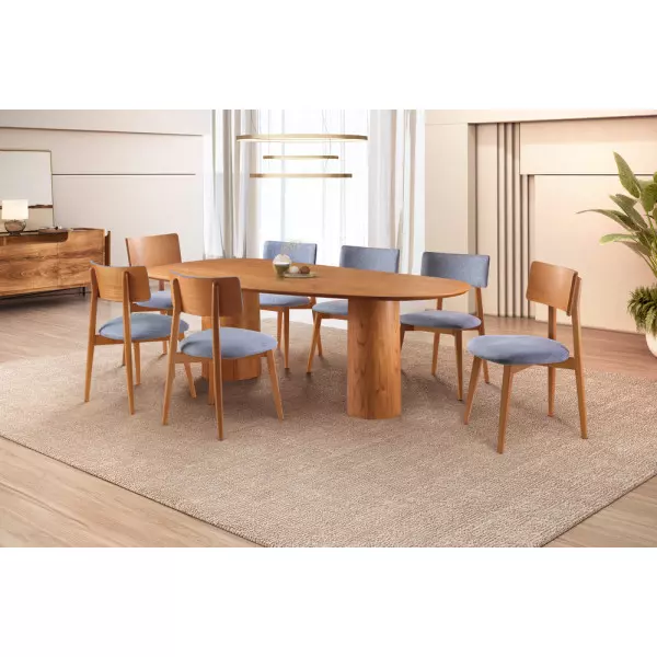 Transforme sua sala de jantar com este elegante conjunto que une design contemporâneo, funcionalidade e aconchego. Com linhas orgânicas e acabamento em madeira natural, é perfeito para quem busca sofisticação sem abrir mão do conforto.