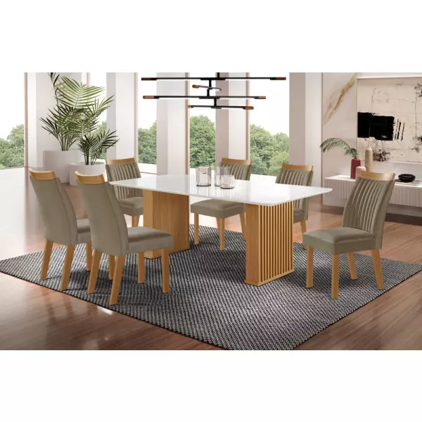 Sala de Jantar Ripada com Vidro 6 Cadeiras 1,80x0,90m - Imperatriz - LJ Móveis